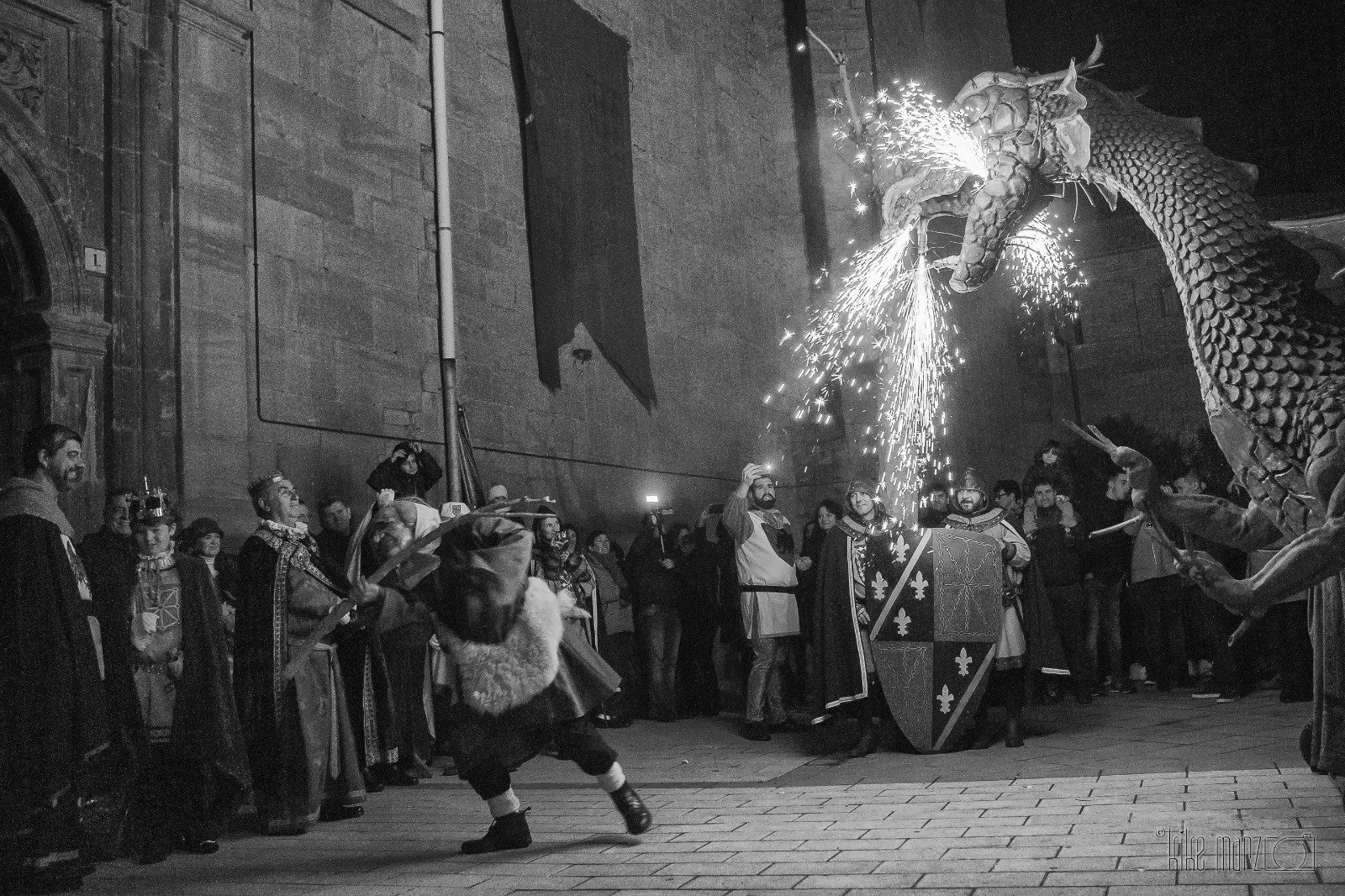 El día de la Fiesta, comienza a mediodía con un desfile que recorre las calles de la localidad y en el que toman parte, el pregonero real (que anuncia la llegada de la Corte a la localidad y la fiesta que en ella se va a celebrar), dantzaris y músicos (Grupo de Dantzas y Fanfarre de Muthiko Alaiak con trajes medievales que deleitan con sus danzas y música medieval) y guerreros (Grupo de Guerreros de la Orden de la Jarra que realizan exhibiciones).