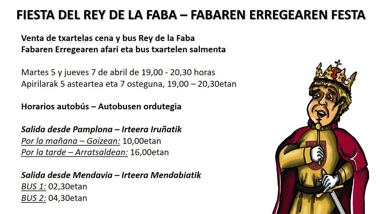 En la siguiente imagen tenéis el horario y los días de venta de las txartelas para la cena de la Fiesta del Rey de la Faba el próximo 23 de abril en Mendavia.